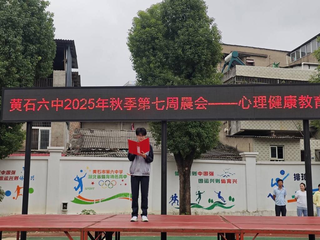 秋意渐浓,晨曦微露。10月13日清晨,黄石六中全体师生齐聚操场,举行了庄严而富有教育意义的第七周晨会。本次晨会不仅是一次常规的集体活动,更是一堂滋养心灵、赋能成长的心理健康公开课。