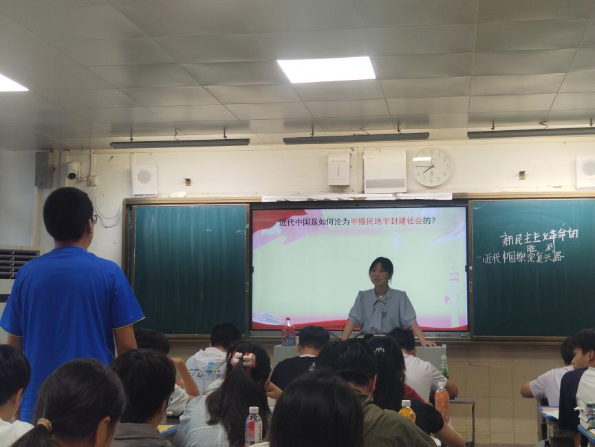 政治组王莹老师以“新民主主义革命的胜利”为主题,融合时政与思辨,实现价值引领与知识传授的统一,培养了学生的爱国情怀。