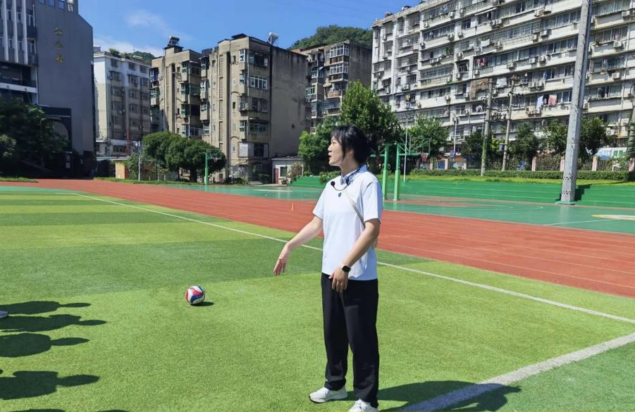 体育组向晶晶老师的课堂充满活力又组织有序,动作示范标准规范。她采用分层教学,有效组织排球训练,真正体现了“健康第一”的教育理念。