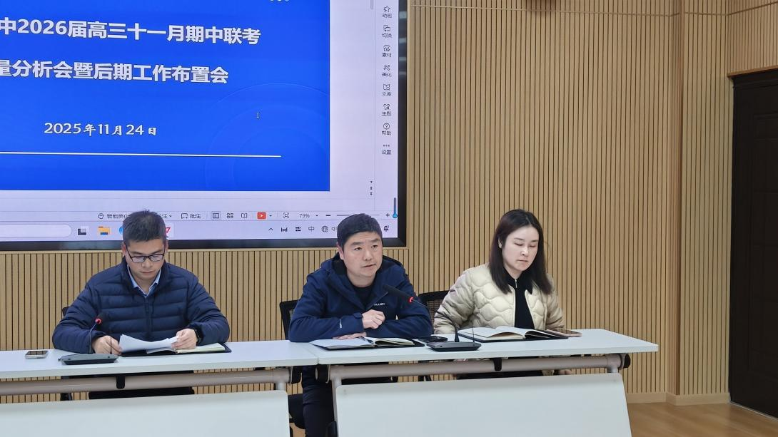 为深入总结期中考试经验,明确下一阶段备考方向,2025年11月24日下午,黄石六中高三年级组织召开期中考试质量分析会。蹲点副校长陈志宝、教学副校长苏畅、教务处主任姜婧莅临指导,支部书记陈之瑾主持会议,高三年级全体教师参加。