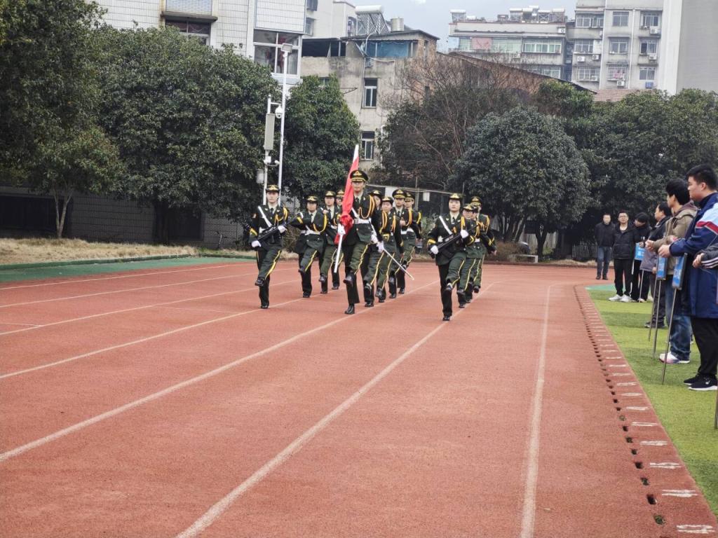 伴随着雄壮激昂的《义勇军进行曲》,英姿飒爽的国旗班同学迈着整齐有力的步伐护送国旗至升旗台。在全体师生的注目礼中,鲜艳的五星红旗冉冉升起,迎风飘扬。嘹亮的国歌声响彻校园,表达了全体师生对祖国的无限热爱和崇高敬意。