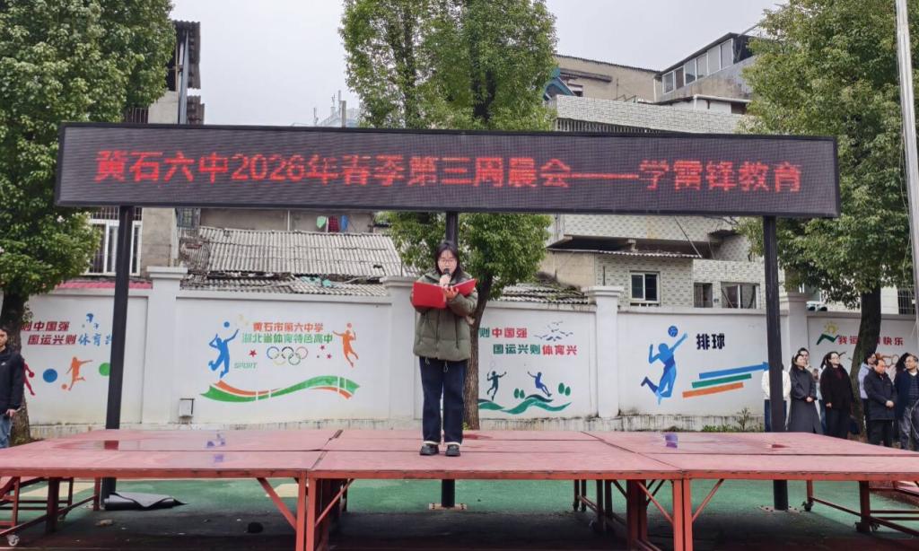 本次晨会不仅是一次庄严的爱国主义教育活动,更是一次深刻的思想道德洗礼。它激励着黄石六中全体师生以身边的榜样为力量,让学雷锋融入日常、化作经常,用平凡的善举点亮青春的品格,共同书写文明、和谐、奋进的校园新篇章。