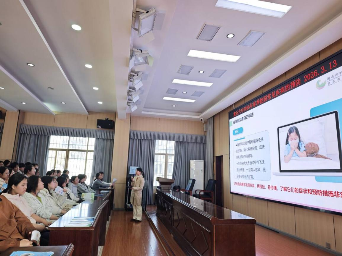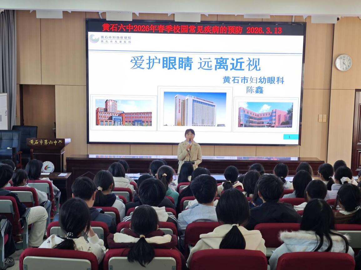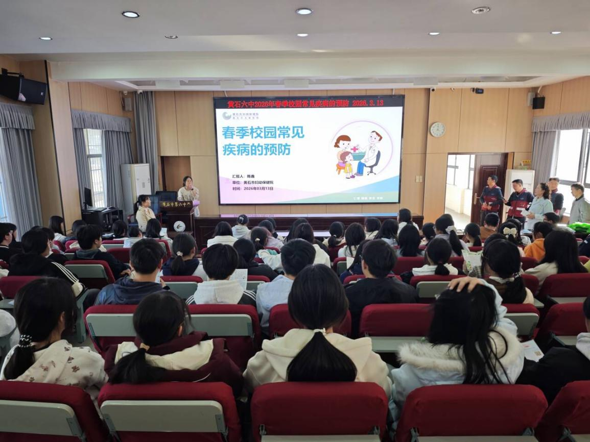 为增强学生健康意识,普及校园常见病防控知识,筑牢校园健康安全防线,3月13日,黄石六中特邀黄石市妇幼保健院的专家团队走进校园,为我校师生带来了一场生动实用的“校园常见病检测预防”专题讲座。